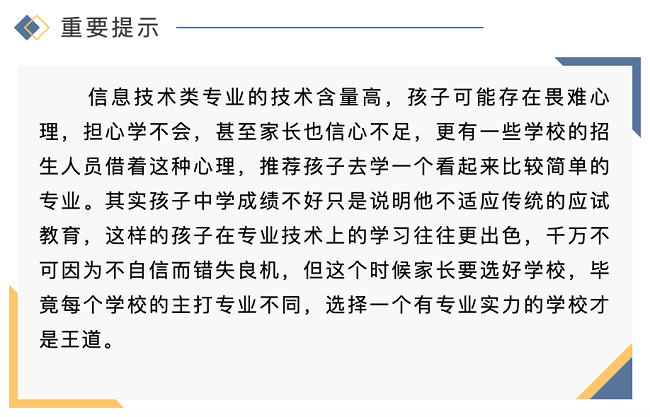 在这个“一技在手,吃穿不愁”的年代,如果你的中考成绩达不到理想的效果,那么建议你学习一个适合自己的专业。在当下,初中毕业生该如何选择好专业?