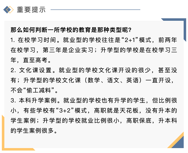 目前中国的职业教育存在两种类型,一种是针对社会服务的低技能就业培训,例如厨师、医护、酒店服务等;另一种就是针对升学的专业基础教育,学生在中专学习三年,是为了将来进入大学学习打好基础。这时,就要根据大学招生专业情况来选择现在的专业了,最好是招生名额多的大类专业。