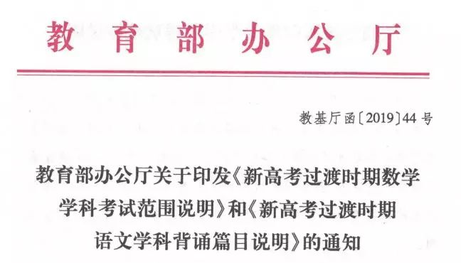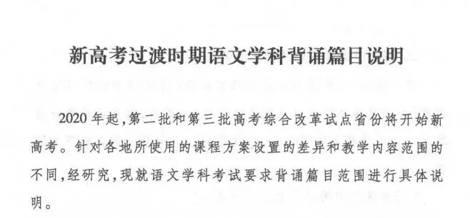 此前,教育部下发了《新高考过渡时期语文学科背诵篇目说明》。过渡时期也就是指有的省已经开始新高考,有的即将,有的还没有。