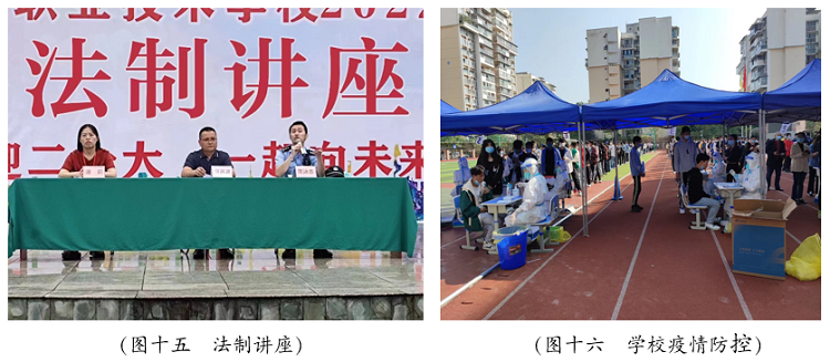 (5)经常性对学生进行行为习惯养成和安全法纪教育。本年度学校聘请了两名法治副校长,他们先后4次到我校对学生进行了法制教育讲座。教育学生严守《中职学生守则》和校纪班规,学校不时纠正学生不良行为和不定期收缴学生违禁物品,促进了校风、班风、学风改观,杜绝了校园欺凌事件发生。